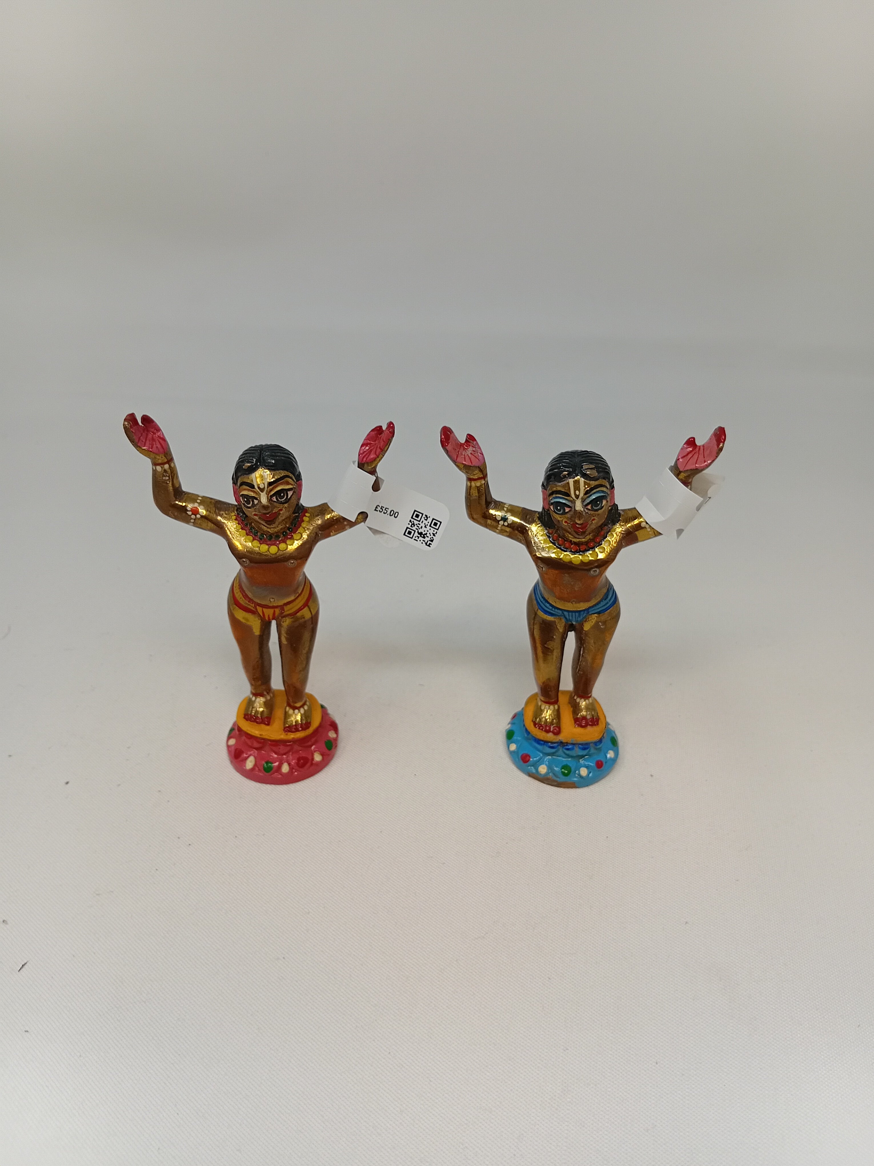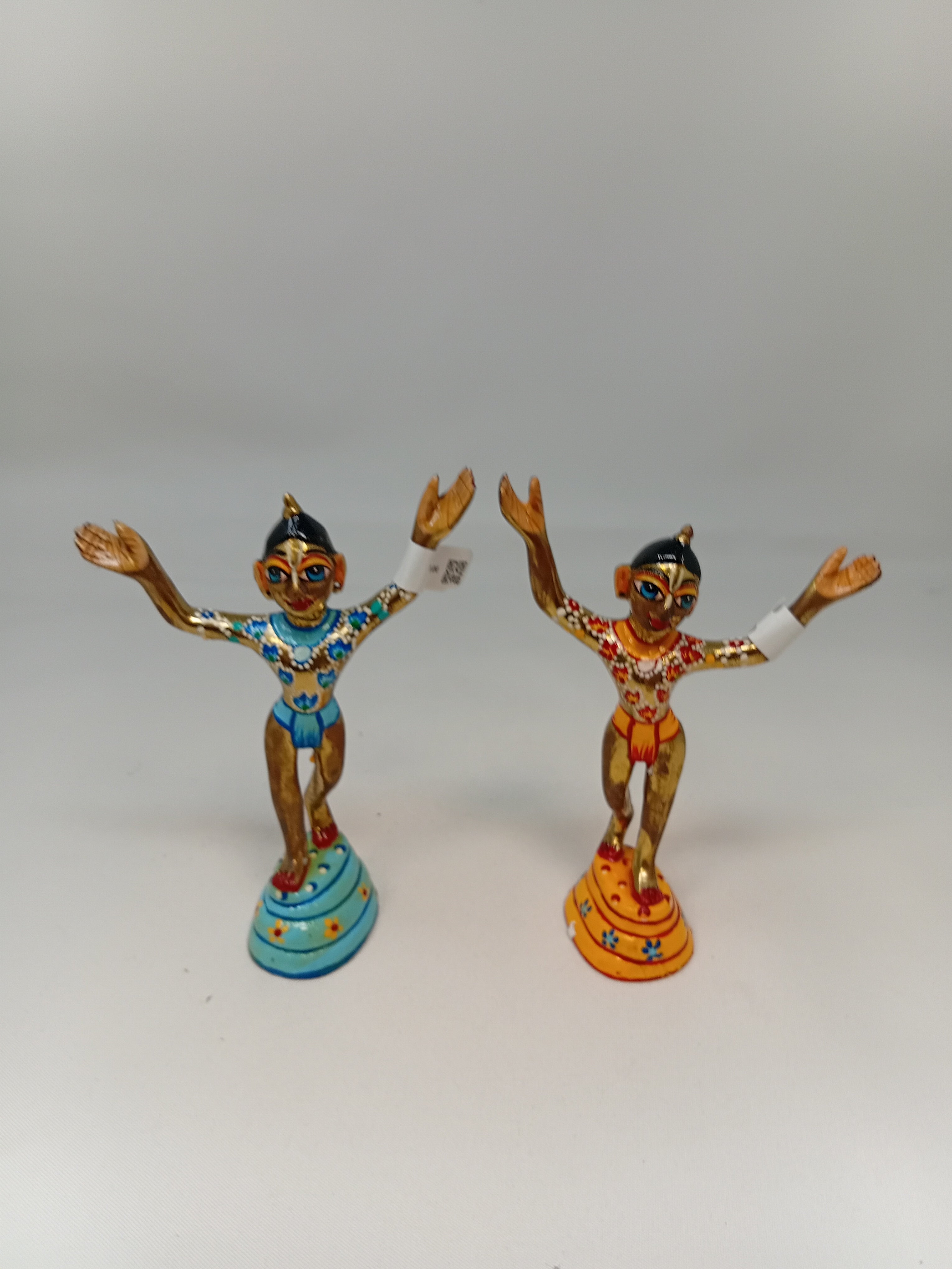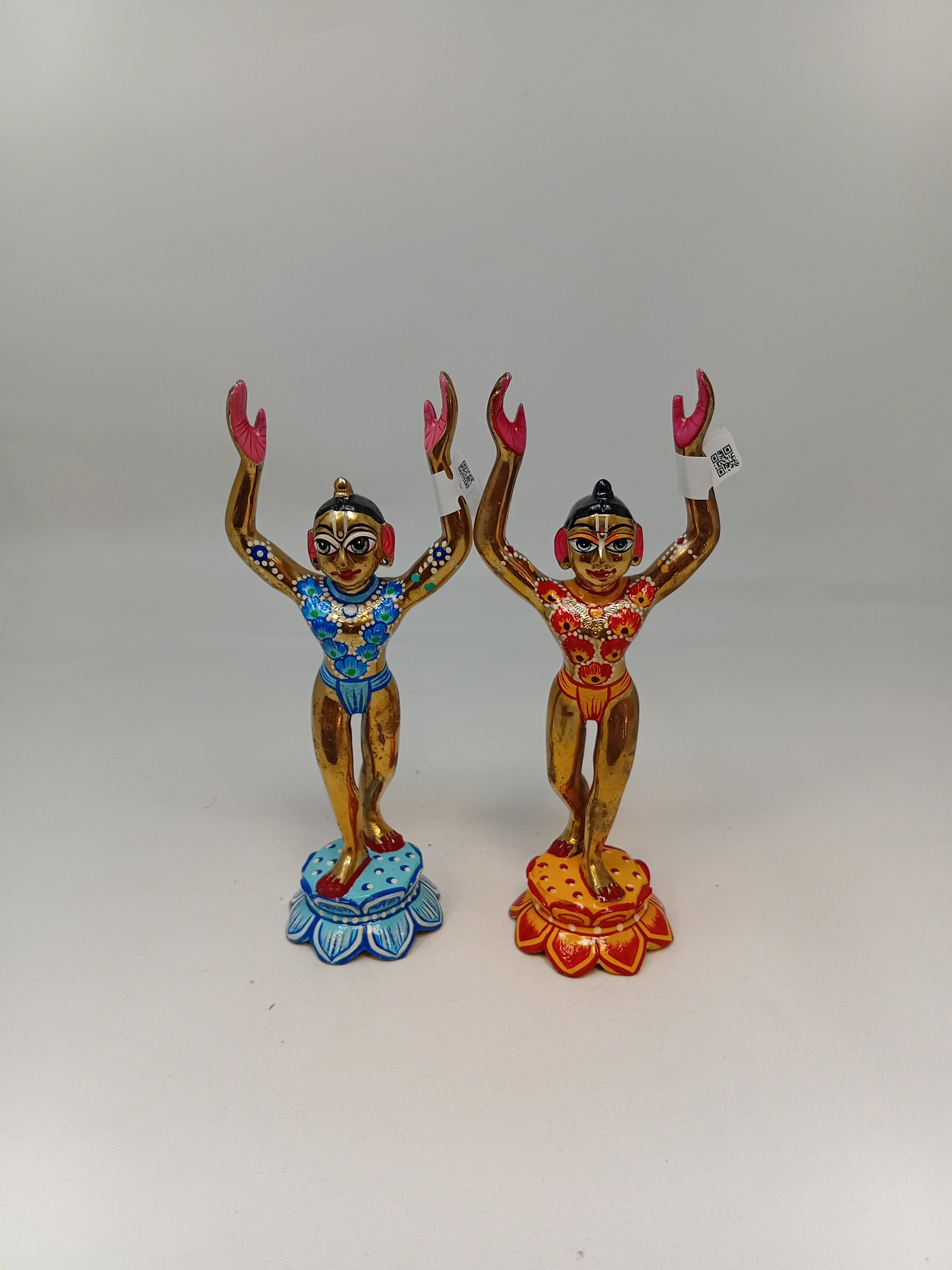 Painted and unpainted brass Deities of Lord Caitanya Mahaprabhu and Lord Nityananda Prabhu with clothes.
